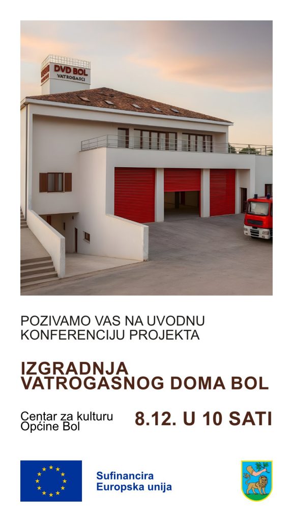 U sklopu projekta Izgradnja vatrogasnog doma Bol, sufinanciranog sredstvima Europskog fonda za regionalni razvoj kroz Integrirani teritorijalni program 2021.–2027., pozivamo vas na dvije aktivnosti: Uvodna konferencija projekta 📅 8. prosinca u 10:00 sati 📍 Centar...